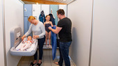 Kijk eens naar onze omkleedcabine voor het hele gezin!