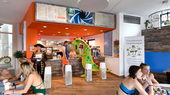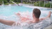Een groot zwembad boordevol action en plezier – dat is ons belevenisbassin. Hier geniet je ronduit, en dat in de letterlijke zin van het woord. Bijvoorbeeld in de draaikolk, die je werkelijk meesleept. Of onder de waterval. Of onder de tropische regendouche. Een heleboel action staat hier op je te wachten. En van het belevenisbassin kun je bovendien rechtstreeks naar buiten zwemmen waar je van nog meer waterattracties kunt genieten.